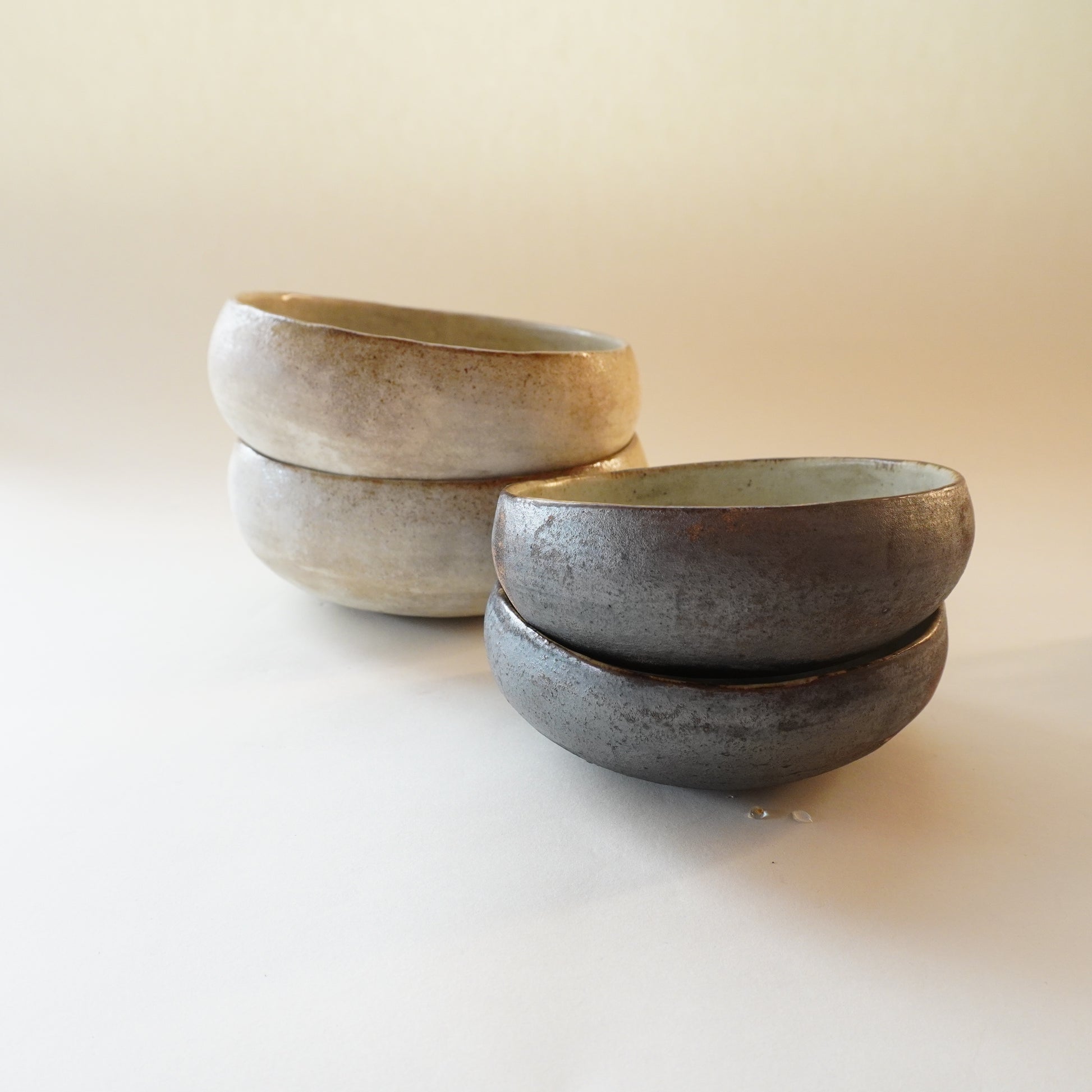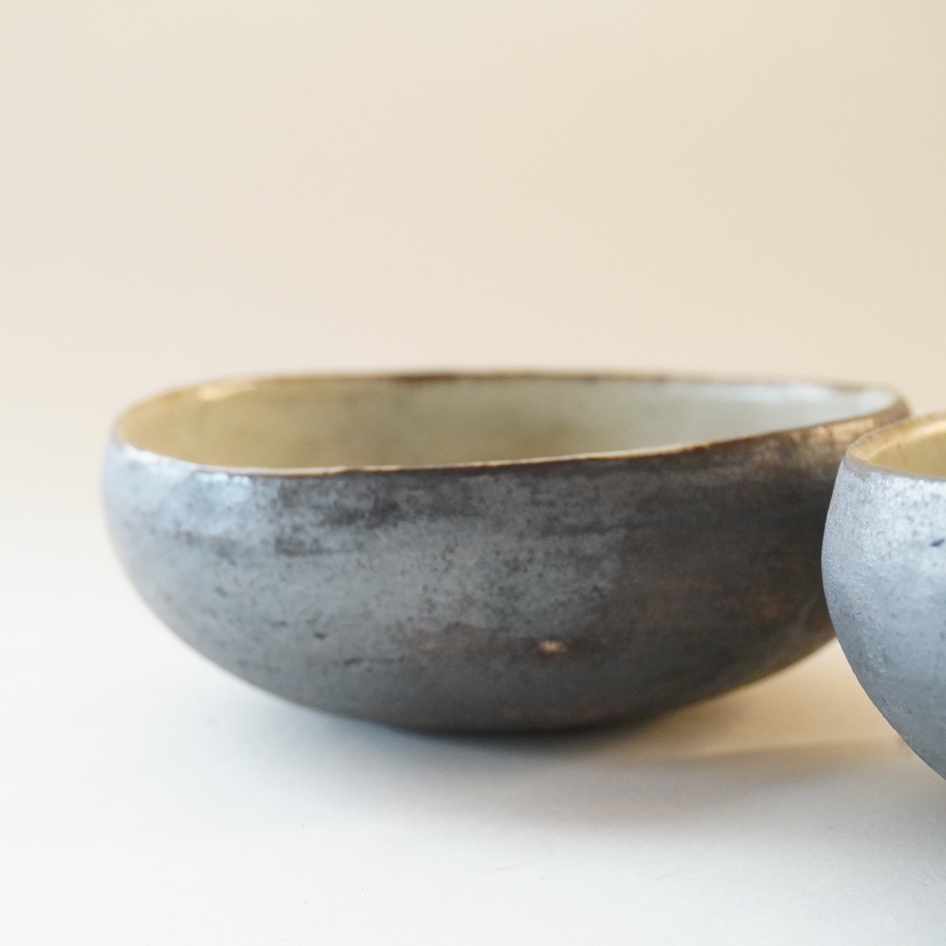 ひとつひとつ手作りでつくられているため、形や大きさ、ピンホール(小さい穴)や歪み方や釉薬の掛かり具合なども多少の違いがあります。手仕事の味わいと作品の個性、味わいとして表情をお楽しみいただけると幸いです。