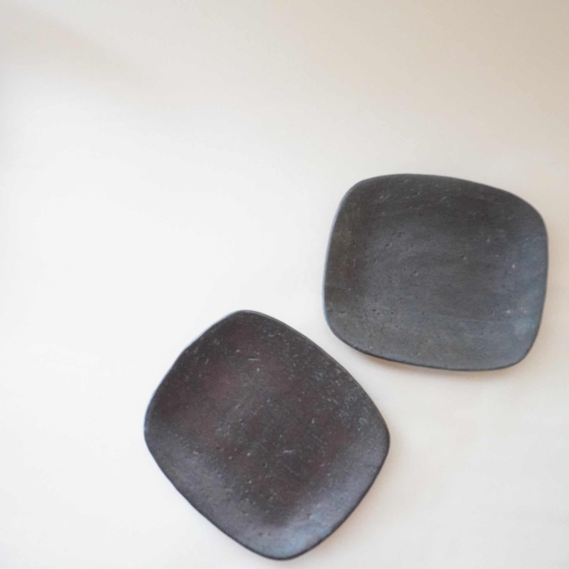 ひとつひとつ手作りでつくられているため、形や大きさ、ピンホール(小さい穴)や歪み方や釉薬の掛かり具合なども多少の違いがあります。手仕事の味わいと作品の個性、味わいとして表情をお楽しみいただけると幸いです。