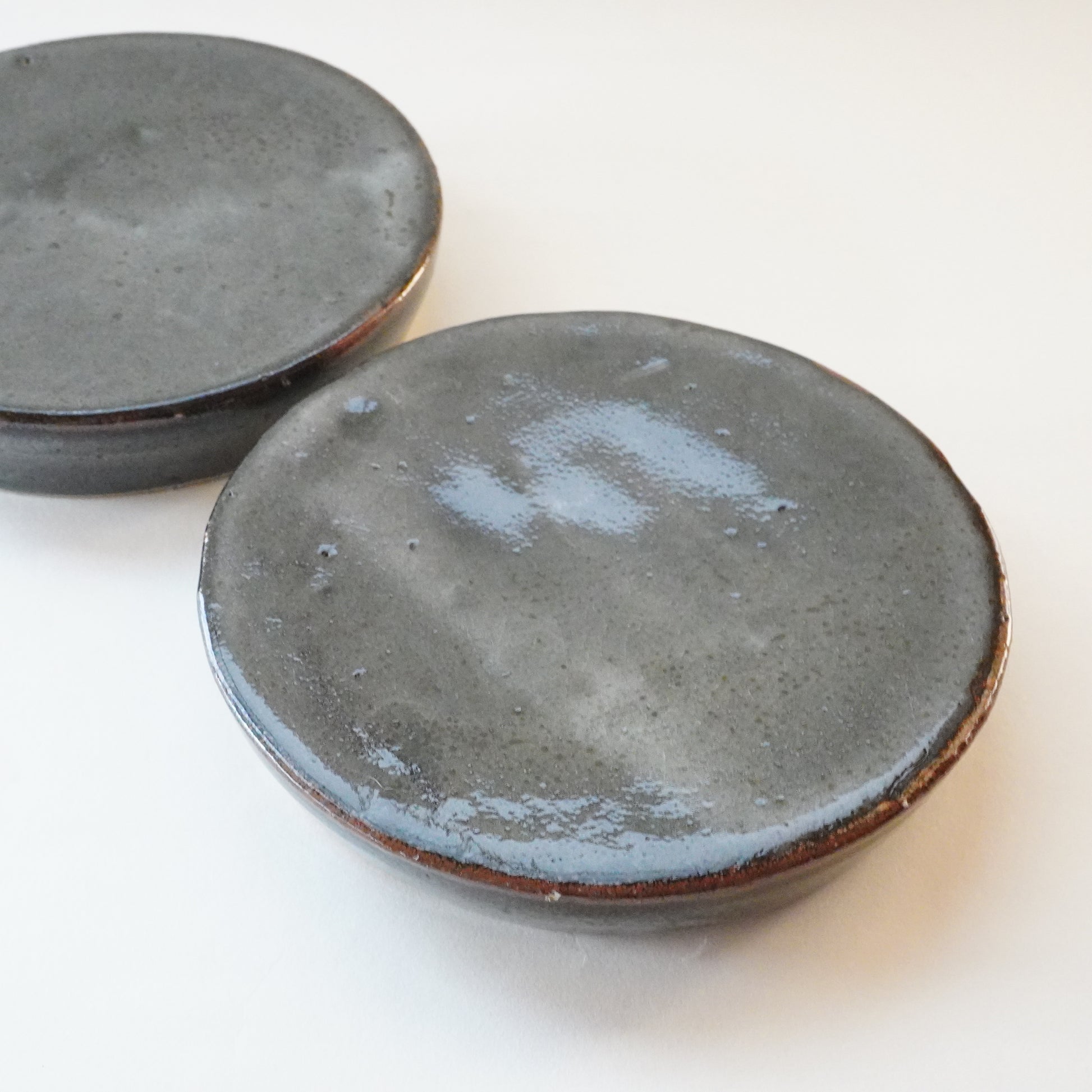 ひとつひとつ手作りでつくられているため、形や大きさ、ピンホール(小さい穴)や歪み方や釉薬の掛かり具合なども多少の違いがあります。手仕事の味わいと作品の個性、味わいとして表情をお楽しみいただけると幸いです。