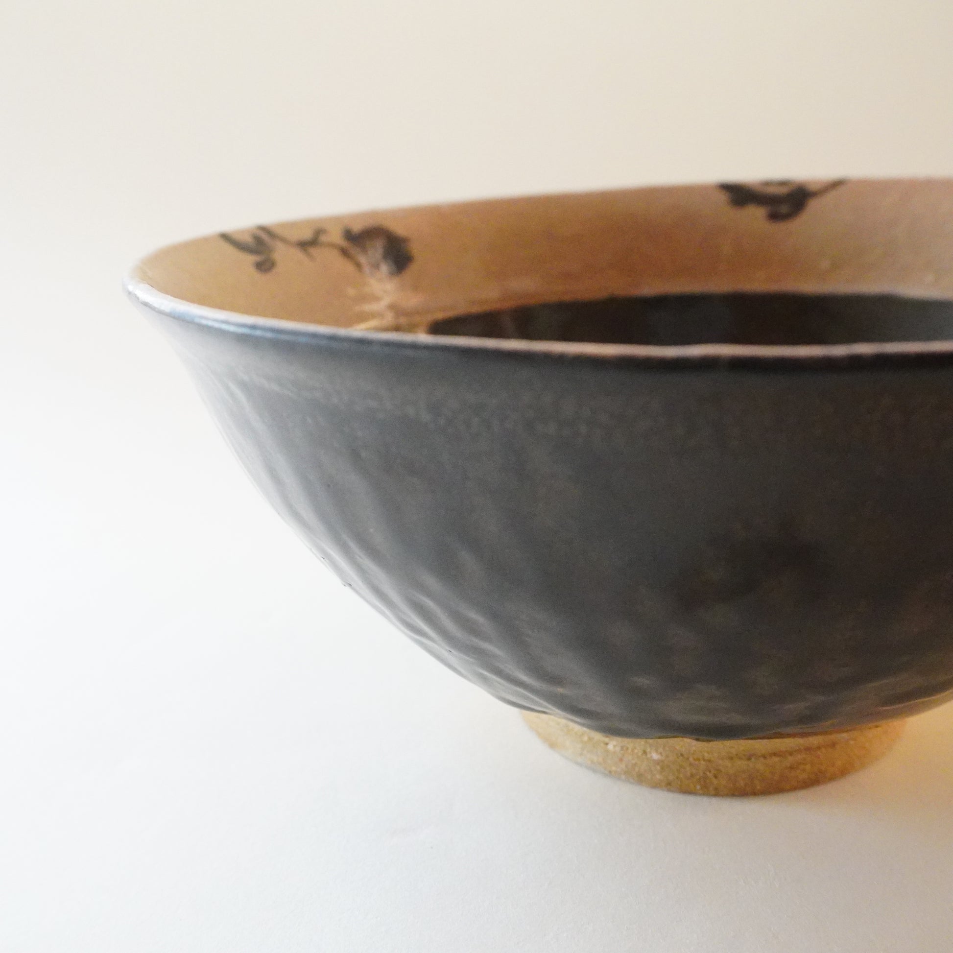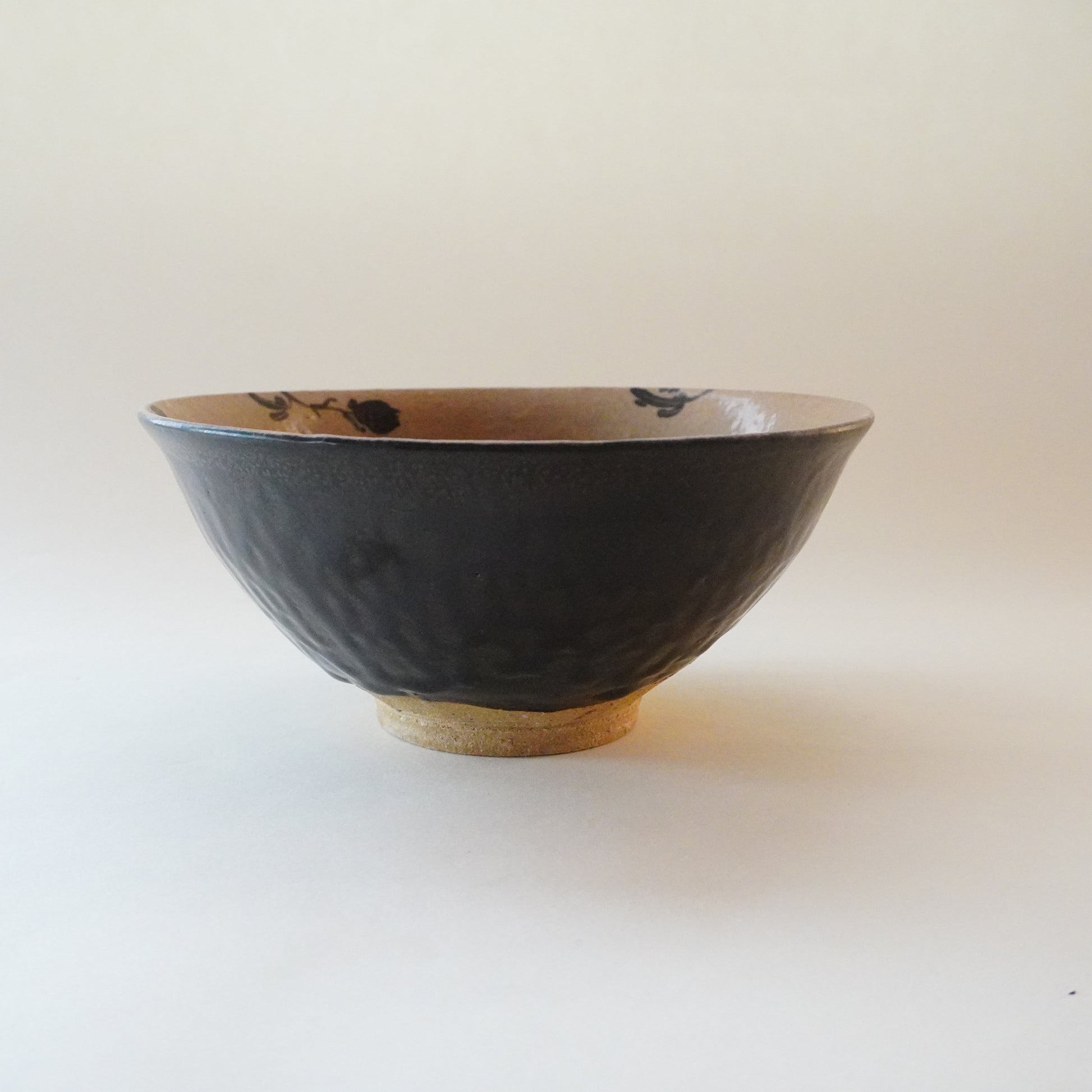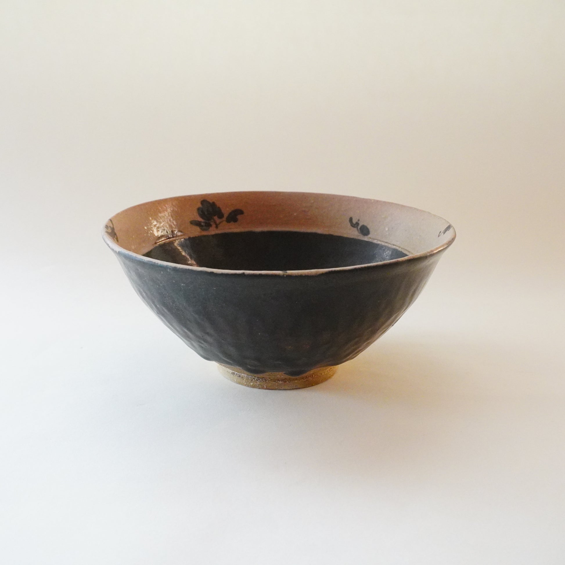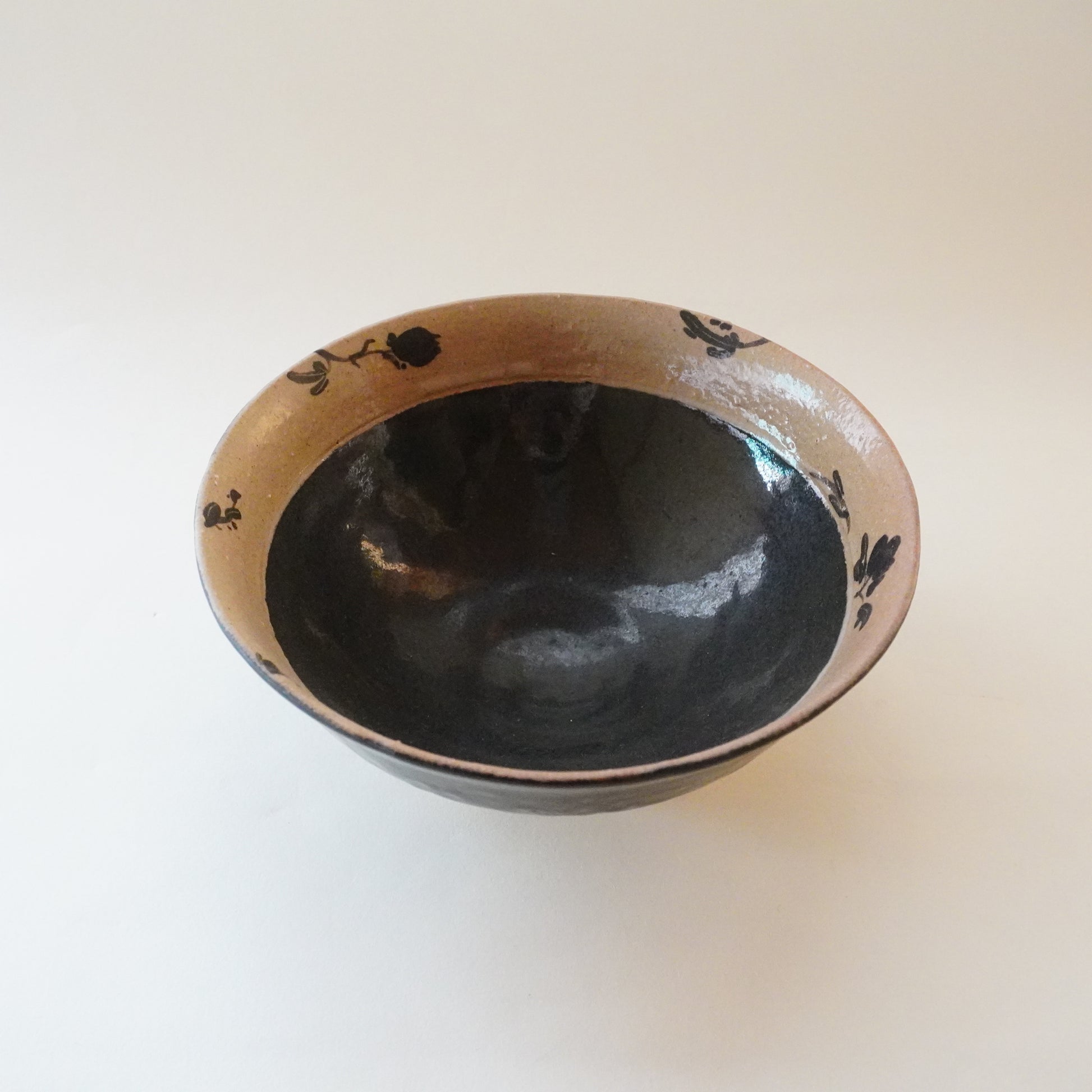 内側に描かれた黒絵が印象的な、黒絵唐津の鉢です。