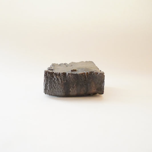 福岡県宮若市の山麓に構えた工房で、自ら築いた薪窯を用い、土づくりから焼成まで一貫して行う制作スタイルが特徴です。